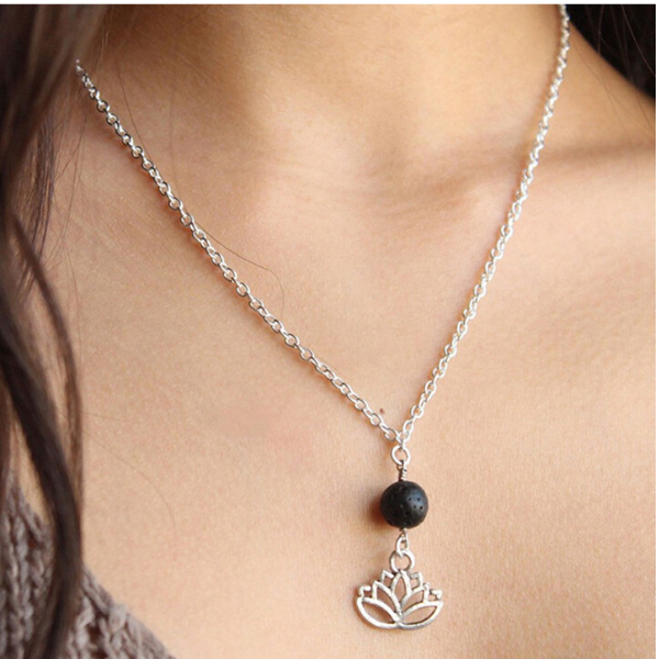Collar Difusor Aromaterapia Flor de Loto con Piedra de Lava